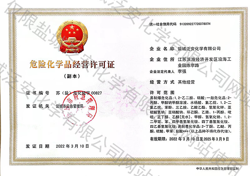 鹽城泛安化學有限公司成立于 2005 年 3 月,是一家專業的分子篩模板劑供應商和技術服務商。主要產品包括四乙基氫氧化銨、 N,N,N-三甲基-1-金剛烷基氫氧化銨、四丙基氫氧化銨、四丁基氫氧化銨、各類新型模板劑、 特種精細化學品等。主要客戶集中 在煤化工 MTO(甲醇制烯烴)催化劑、環保工業領域的汽車尾氣凈化催化劑等領域...